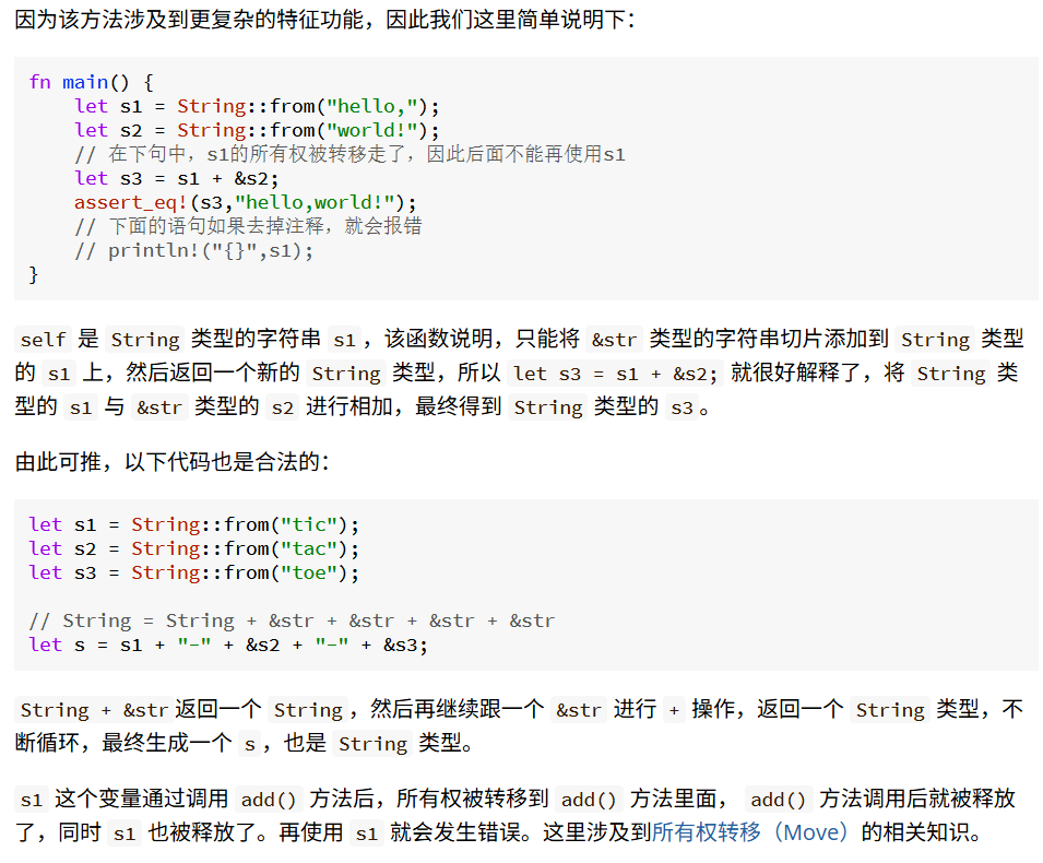 String是标准库里的堆分配、可增长、可修改、有所有权的字符串类型&str是堆程序中一段只读数据的不可变借用,没有所有权(因为是引用)